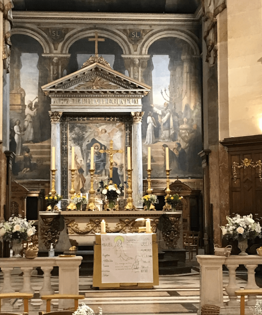 Pour la première communion, ils rejoignent les enfants de la paroisse Saint Thomas d’Aquin au moment de la retraite (habituellement aux Missions étrangères rue du bac 75007 Paris) ainsi qu’au moment de la cérémonie.